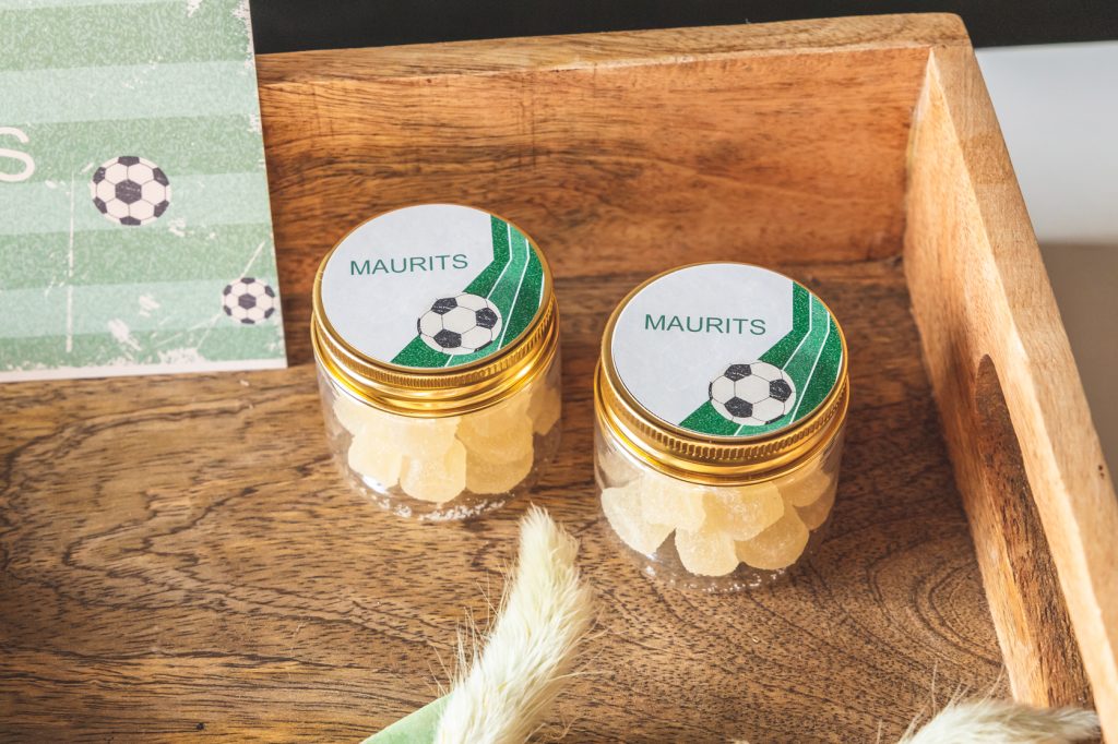 Met dezelfde leuke ideetjes als hierboven kan je het hele feestje aankleden, zeker als je het thuis organiseert. Ga voor snoepzakjes, kubusdoosjes, magneetjes of buttons met een leuke foto of hele leuke blikken doosjes met gepersonaliseerde stickers! Alles kan op jouw feest! Als jullie dingen graag thuis organiseren dan is dit de perfecte traktatie!