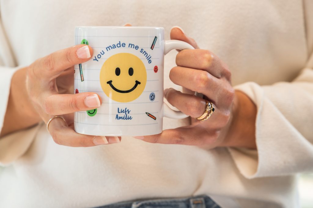 Wat er in de lerarenkamer gebeurt is al lang geen geheim meer: koffie, koffie en nog eens koffie. Een emaille koffiemok is dan ook het perfecte bedankje voor de juf of meester! Personaliseer de mok met je favoriete quote, in 1-2-3 heb je je gepersonaliseerde bedankje.